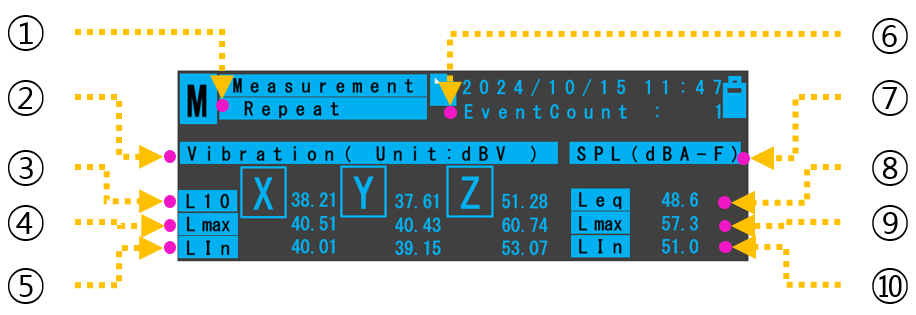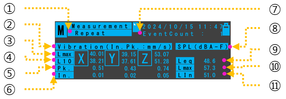 ③ | Vibration Lmax | 환경진동 계측 dBV 최대값표시 |