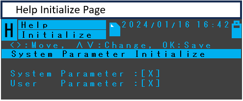 Help Menu의 Initialize Function은 계측기 조작 시 사용되는 시스템 및 사용자 설정정보를 초기화 하는 Function Page입니다.