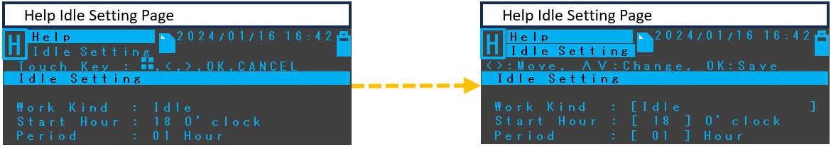 - Help Function 선택: <,> Key를 touch하여 사용할 Function을 선택